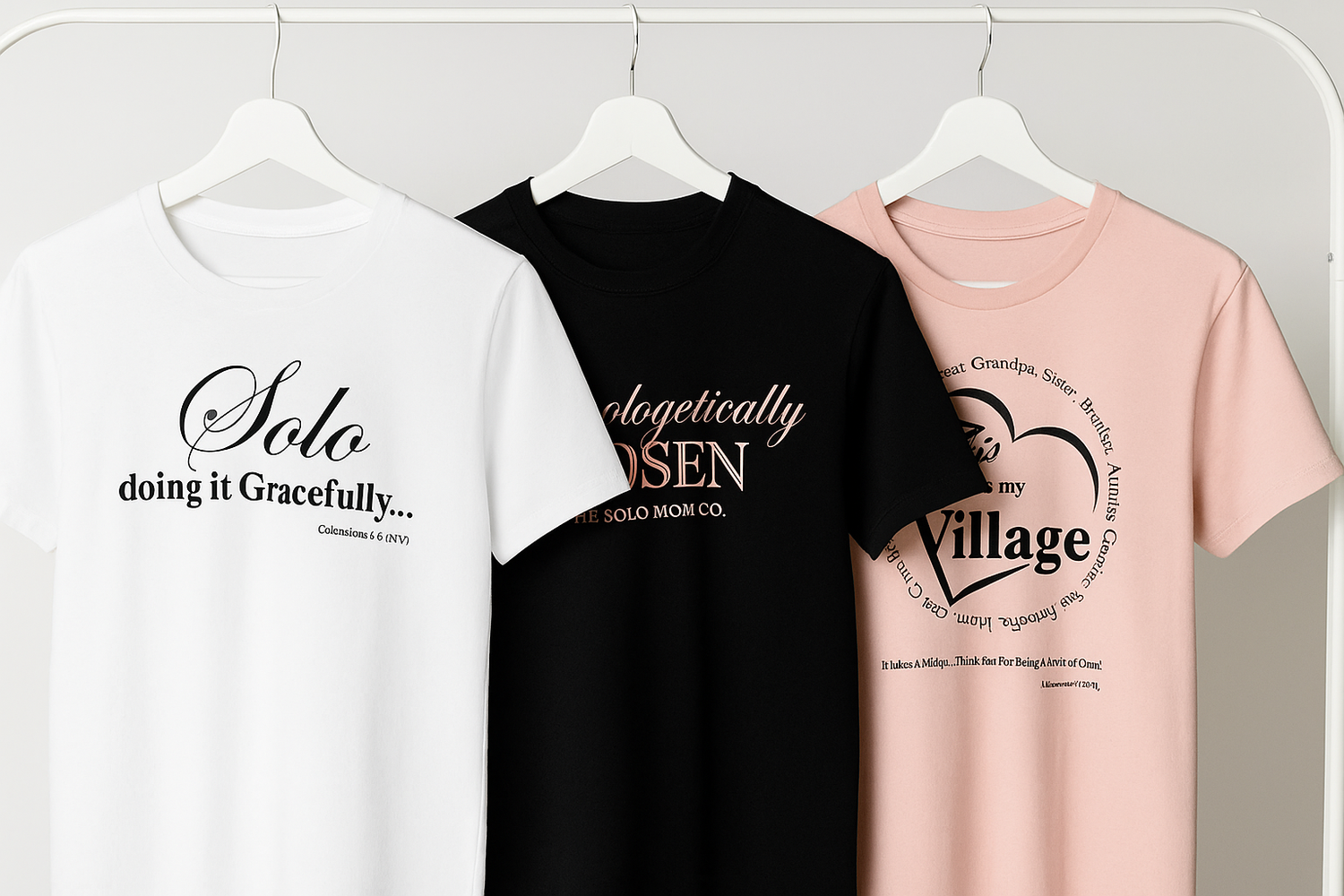 From grace to purpose to community, each design reflects a piece of your journey. Created to remind solo moms they are chosen, capable, and never alone.